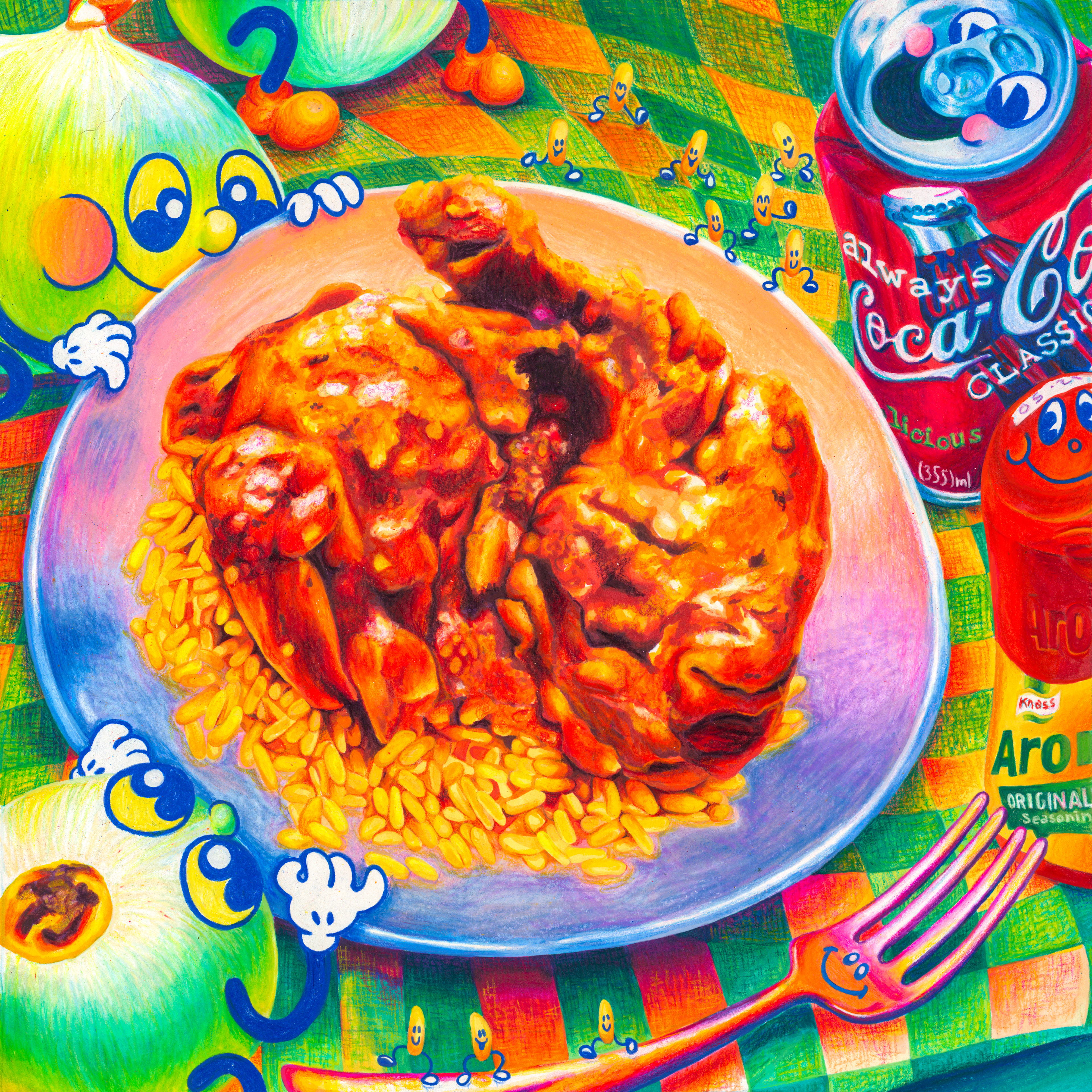 Editorial illustration Moon's secret chicken recipe by Moonchild Sanelly for The Grind on