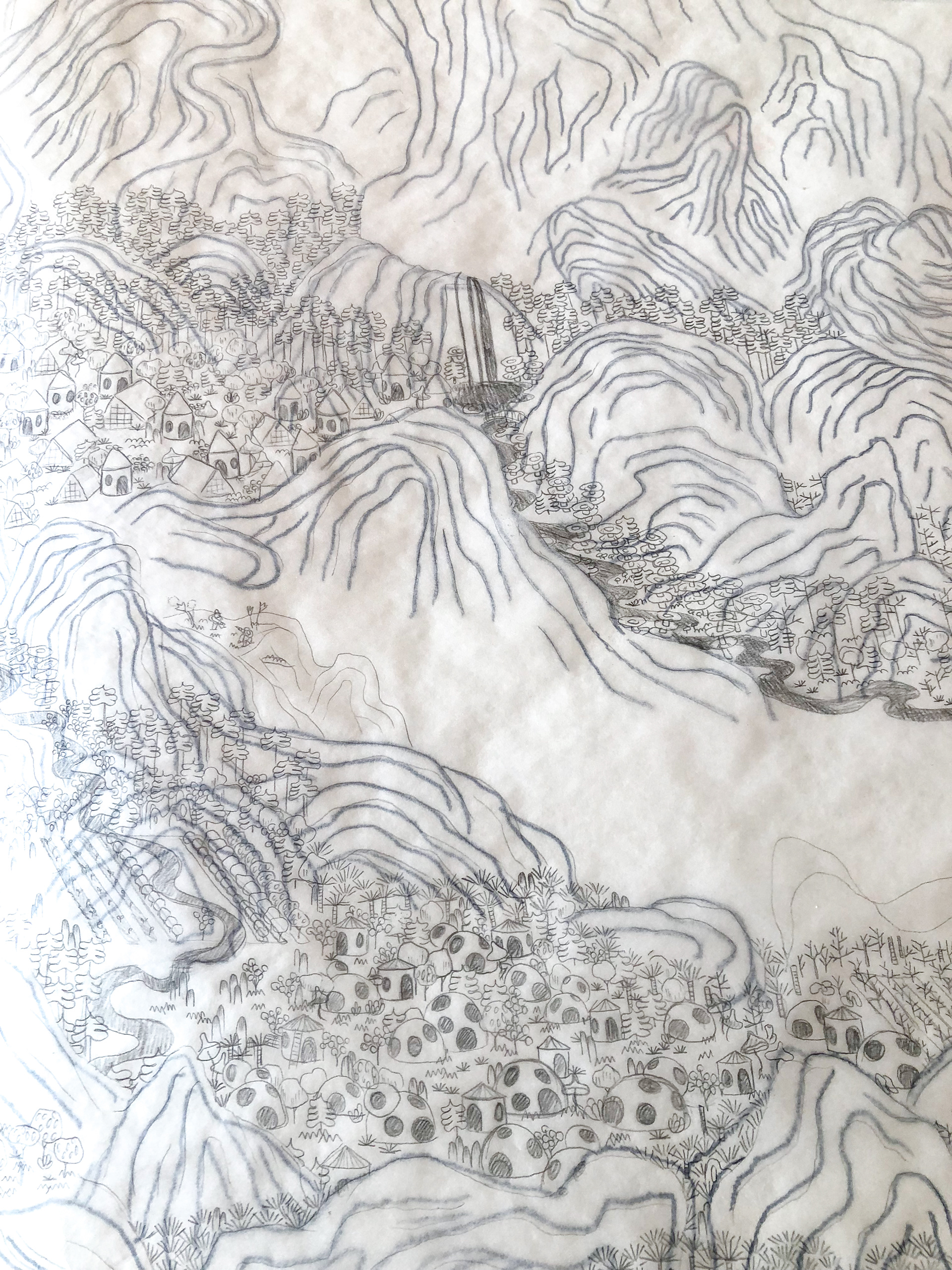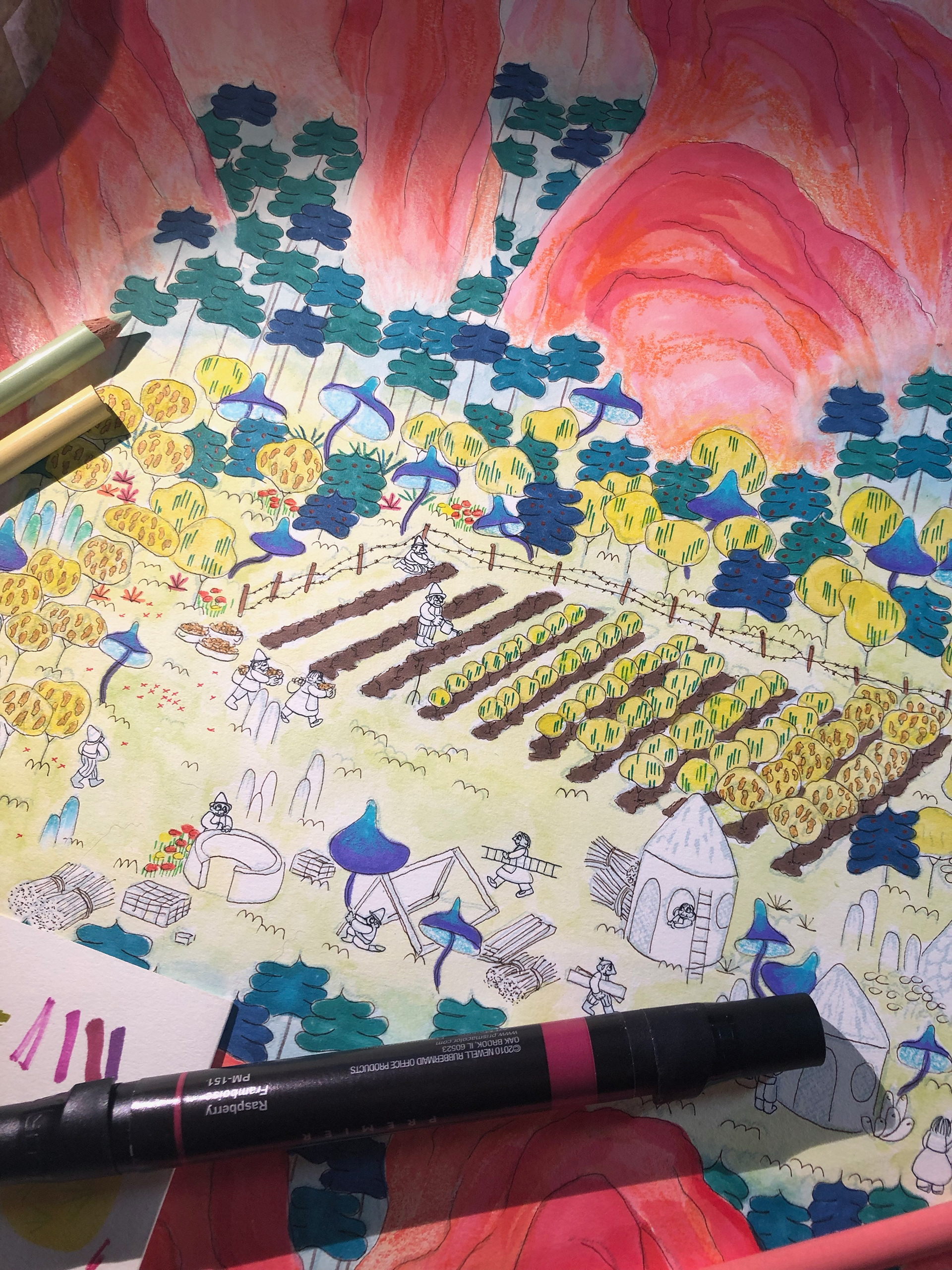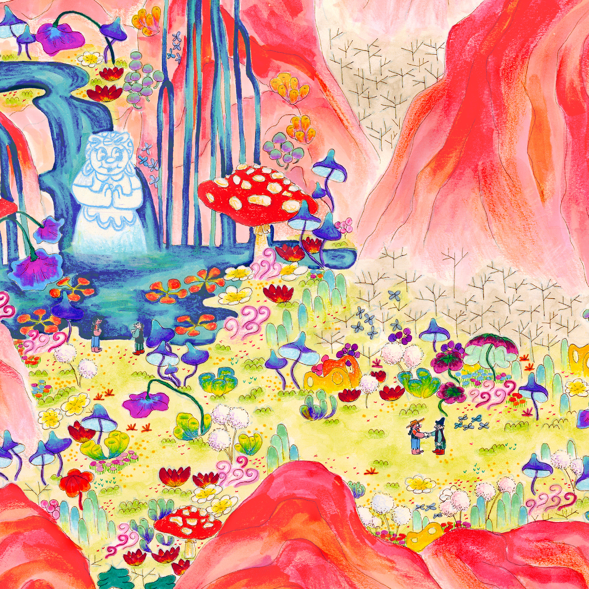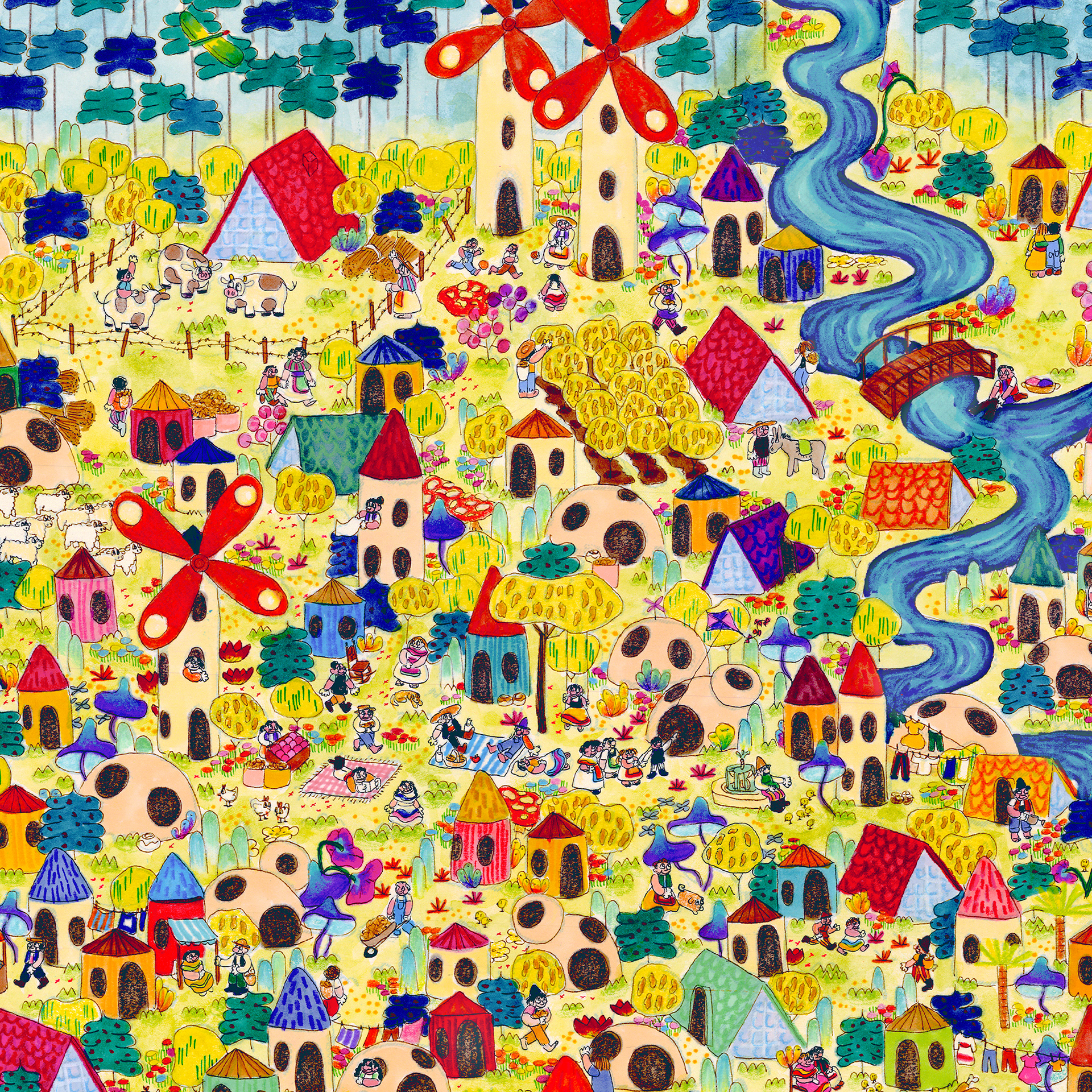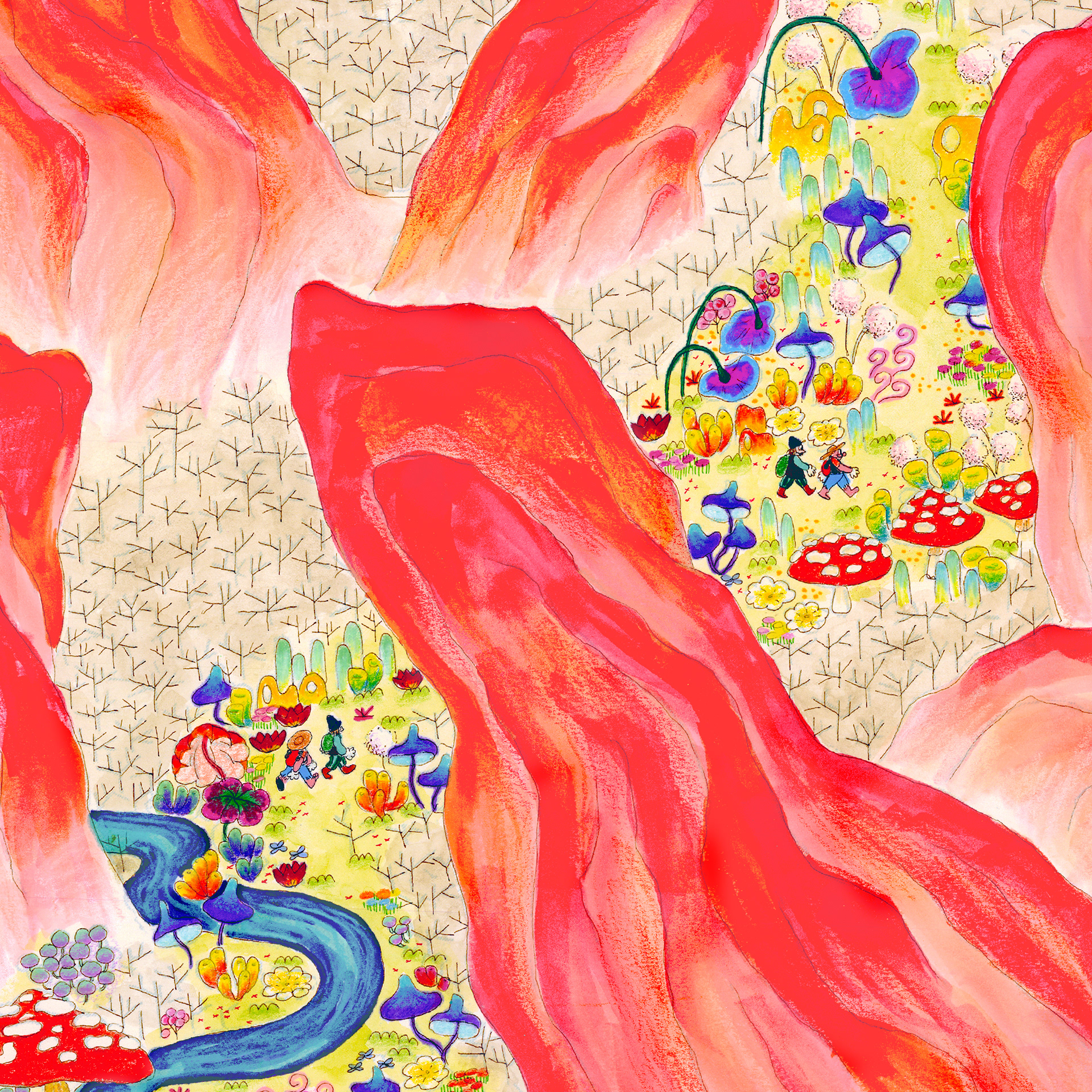 “The History of Peak Posh” is inspired by the relationship of the Dominican Republic with Haiti, as well as the ubiquity of fried chicken restaurants (Pica Pollo) throughout the island. This piece is a story of discovery, conflict, resolution, and harmony set on a delicious island, where fried chicken grows on trees–enjoy. 28"x13ft